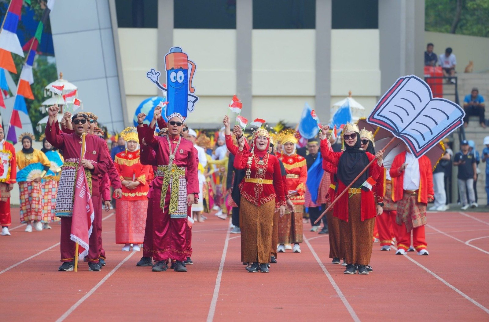 As the highlight of the opening ceremony, a community fun walk was आयोजित along a route from Prof. Dirham Field to the UNNES Rectorate Field. Thousands of participants joined the activity with great enthusiasm, further enlivening the celebratory atmosphere.
