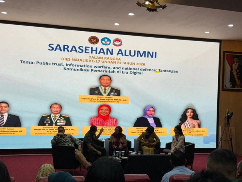 EduAsiaNews, Jakarta – The Indonesian Defense University (Unhan RI), through its 2026 alumni cohort, held a seminar titled “Public Trust, Information Warfare, and National Defense” at the Theater Room of the Bela Negara Campus, Unhan RI, Sentul, on Monday, April 6, 2026. The event took place from 08:30 a.m. until the afternoon and was attended by alumni, academics, communication practitioners, and government officials.