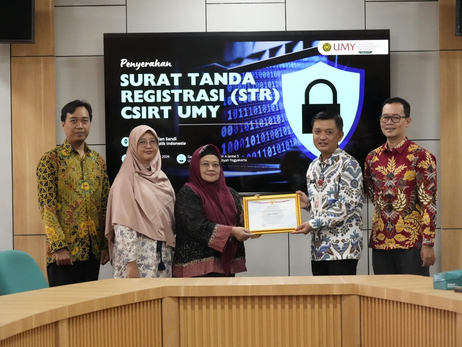 As part of efforts to strengthen campus cyber resilience, Universitas Muhammadiyah Yogyakarta (UMY) has officially established a Computer Security Incident Response Team (CSIRT) and obtained a Registration Certificate (Surat Tanda Registrasi/STR) from the National Cyber and Crypto Agency of the Republic of Indonesia (BSSN). With this registration, UMY is recorded as the third Muhammadiyah and ‘Aisyiyah Higher Education Institution (PTMA) in Indonesia to formally establish a cyber incident response team.